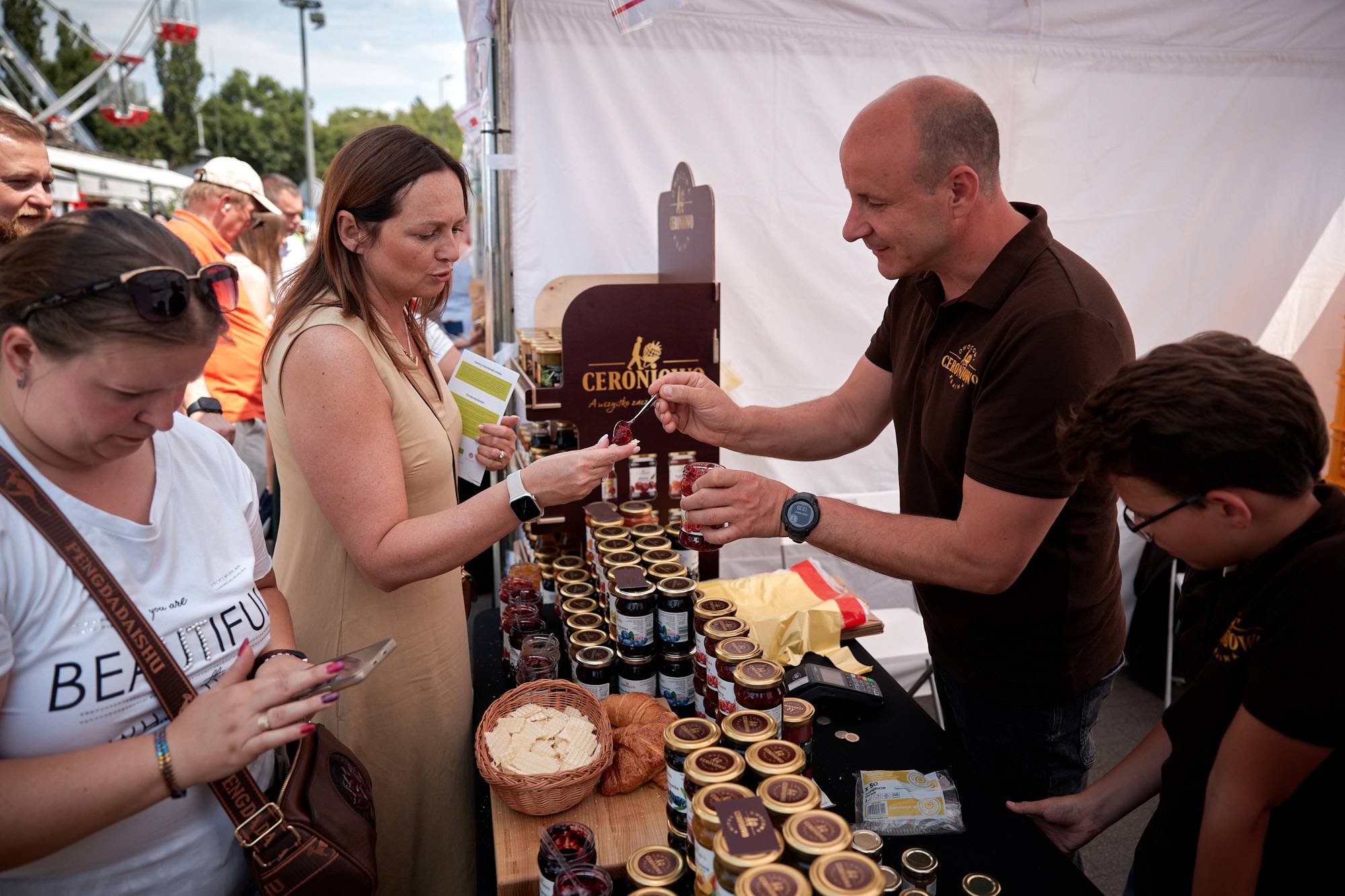 Wśród wystawców było wiele KGW oraz producentów regionalnej, tradycyjnej żywności. Ich stoiska kusiły pierogami z różnorodnym farszem, żurkiem na prawdziwym zakwasie, rzemieślniczymi serami czy domowymi przetworami. Smaki i aromaty przyciągały gości jarmarku a produkty oraz potrawy błyskawicznie znikały. - Wystawialiśmy się dzisiaj ze świeżonką, bigosem i pierogami z mięsem i kapustą, mamy też duży wybór ciast. Jest bardzo duże zainteresowanie, bardzo dużo chętnych, świeżonka już się skończyła – przyznał ok. godz. 16 Norbert Dudek z KGW Pod Lipami z Koła w pow. piotrkowskim. Gospodynie z KGW Chorki z pow. łęczyckiego do Łodzi przyjechały z prażokami, karkówką w sosie i żurkiem chorkowskim. Jak zdradziła Dorota Suchocz z koła, zupa jest robiona według bardzo starego przepisu przekazywanego z pokolenia na pokolenie. – Podstawą jest zakwas chorkowski z mąki żytniej z dodatkiem skórki chleba, kisi się go 7 dni – mówi.