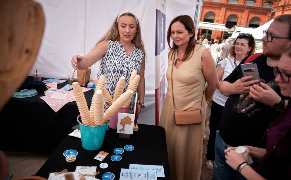 Jarmark wystartował w samo południe. Na rynku Manufaktury stanęły namioty wystawców m.in. twórców ludowych, rękodzielników i producentów tradycyjnej żywności. Była również bogata i bezpłatna strefa dla dzieci z dmuchańcami, watą cukrową i animacjami. A to wszystko przy dźwiękach regionalnej muzyki ludowej, bo na scenie – przed gwiazdą wieczoru, czyli Lanberry – zaprezentowało się aż 10 zespołów i orkiestr dętych z każdej części Łódzkiego.