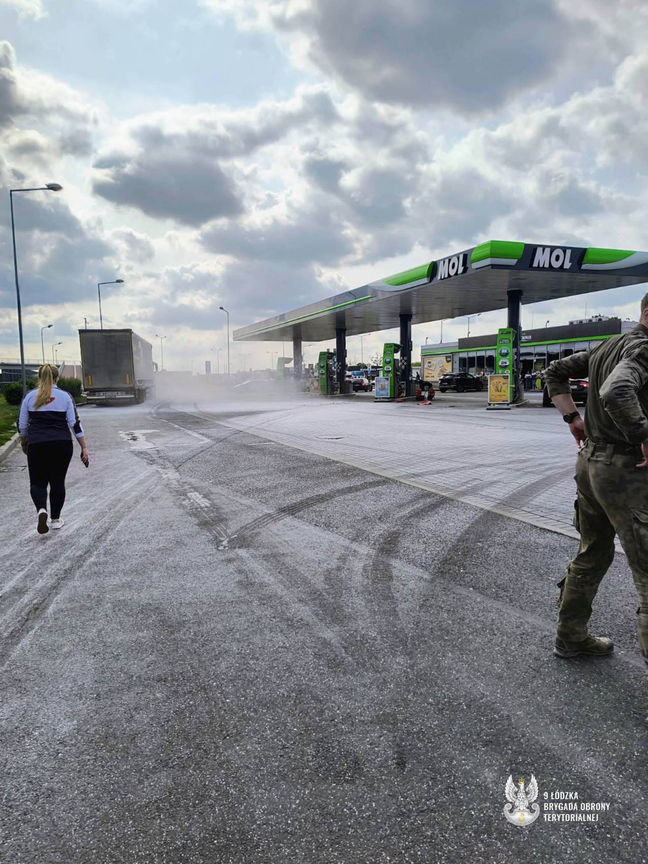 Bezpośrednio przed dystrybutorem paliwa zapalił się samochód osobowy. Na pomoc natychmiast ruszyli st. szer. spec. Krzysztof, st. szer. spec. Filip, ppor. Konrad oraz ppor. Tomasz. Żołnierze 9ŁBOT, nie zważając na zagrożenie, podjęli skuteczną akcję gaśniczą, a następnie przepchnęli dymiący pojazd w bezpieczne miejsce, kontynuując gaszenie do czasu przyjazdu straży pożarnej. Cała akcja trwała około 20 minut, zużyto 10 gaśnic w tym 2 agregaty. W międzyczasie obsługa stacji zamknęła jej działanie, a na miejsce została wezwana straż pożarna, która przejęła dalsze działania.